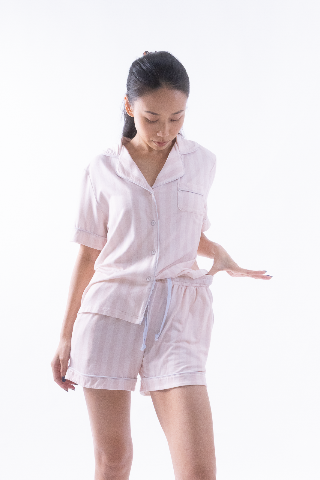 Blush Stripe Cloud PJ Set – Short Sleeve Top + Shorts