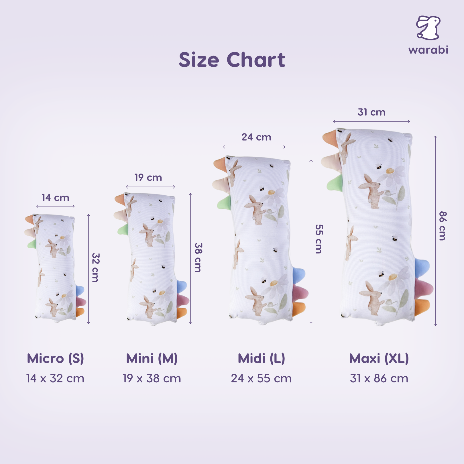 - Mini (M): 19 x 38 cm