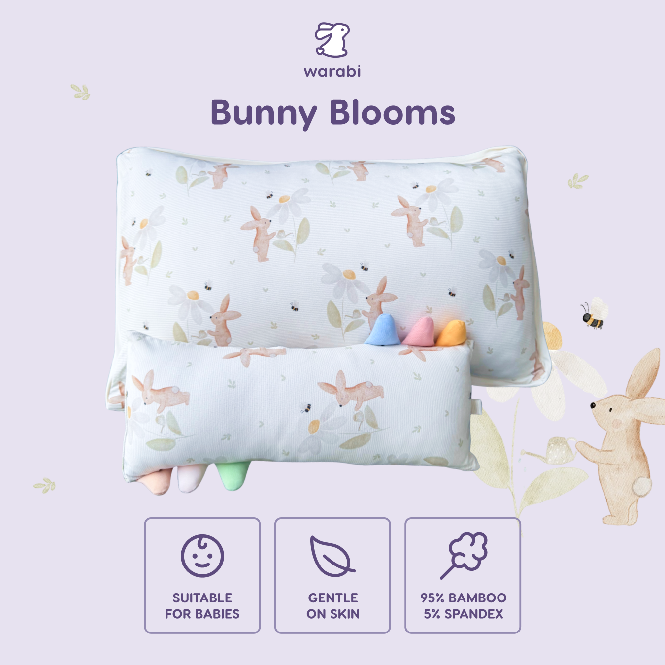 Bunny Blooms Snuggle Bamboo Pillow