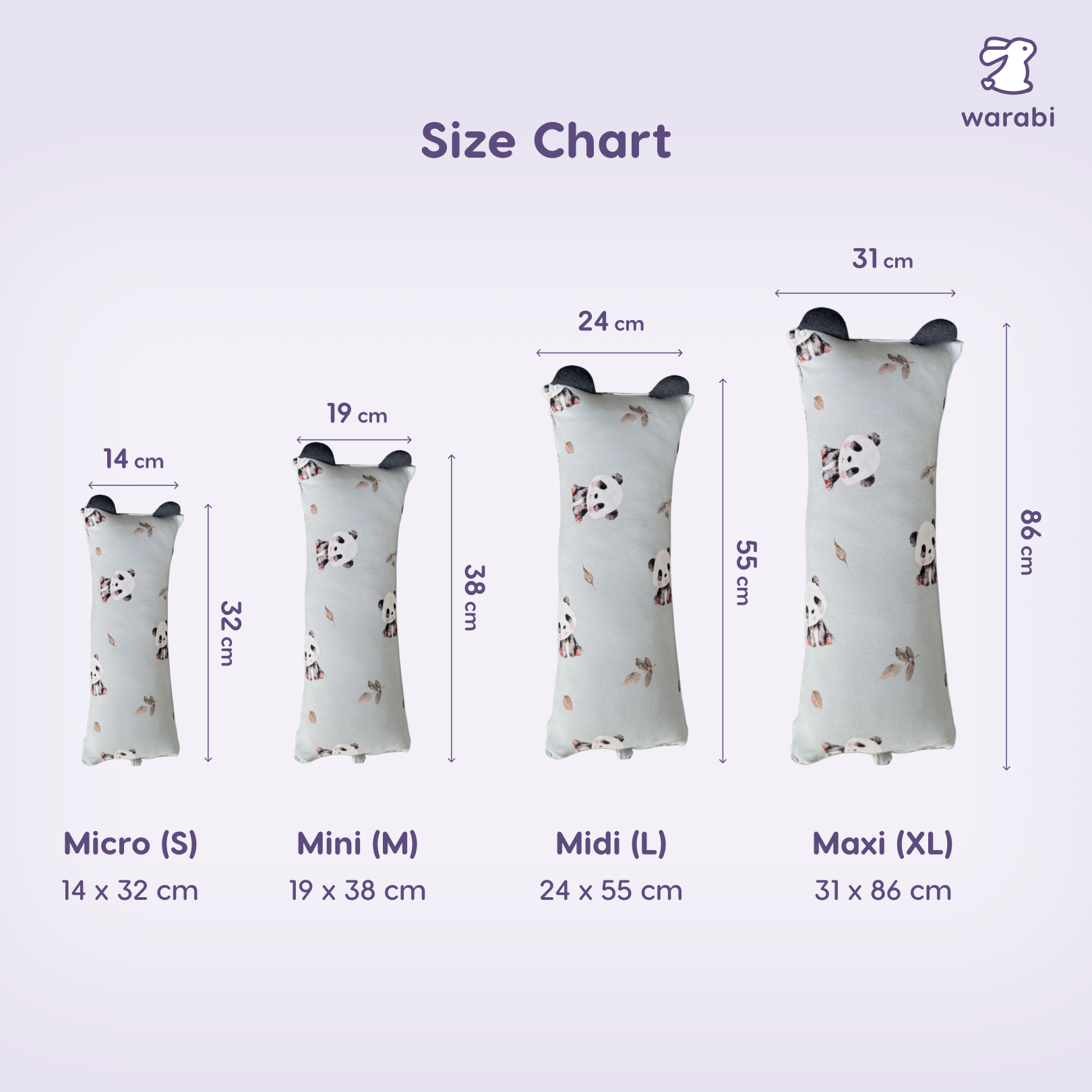 - Mini (M): 19 x 38 cm