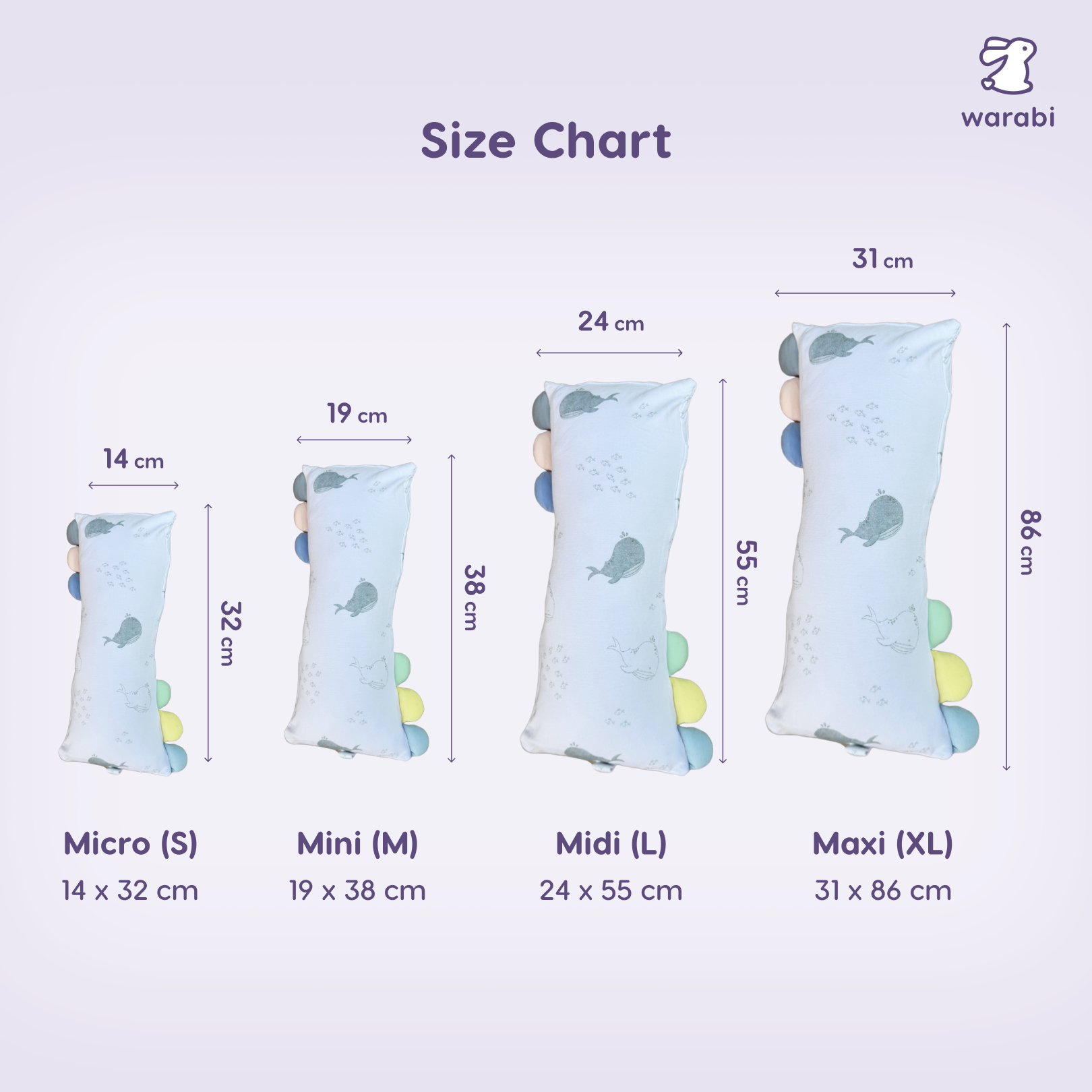 - Mini (M): 19 x 38 cm
